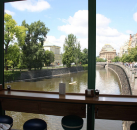 Kavárna, která vás upoutá nejen svojí geniální polohou s výhledem na Vltavu a Národní divadlo, ale také útulným prostředím, můžete zde ochutnat jedinečné domácí zákusky, cukrářské výrobky a skvělou kávu,